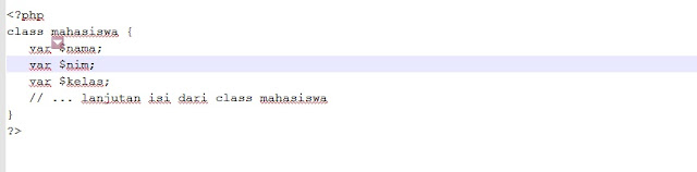 Jadi $nama, $nim, $kelas adalah property dari class mahasiswa tersebut.