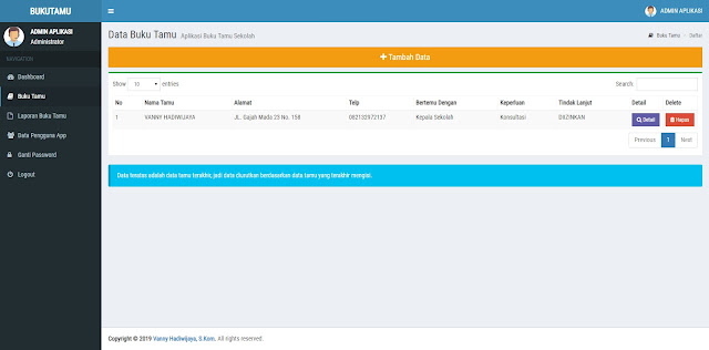 Mungkin itu saja yang bisa saya jelaskan mengenai Sistem Informasi Buku Tamu Berbasis Web ini. Jika teman-teman berkenan memiliki aplikasi ini, mungkin untuk bahan pembelajaran, referensi, atau ingin digunakan di lembaga nya. Bisa menghubungi kontak saya dibawah.