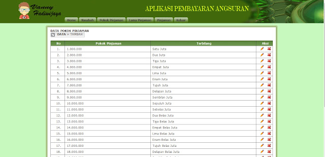 2. Modul Pokok Pinjaman, yang berfungsi untuk mengelola data pokok pinjaman (tambah, edit ataupun hapus).