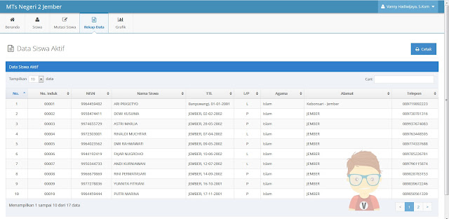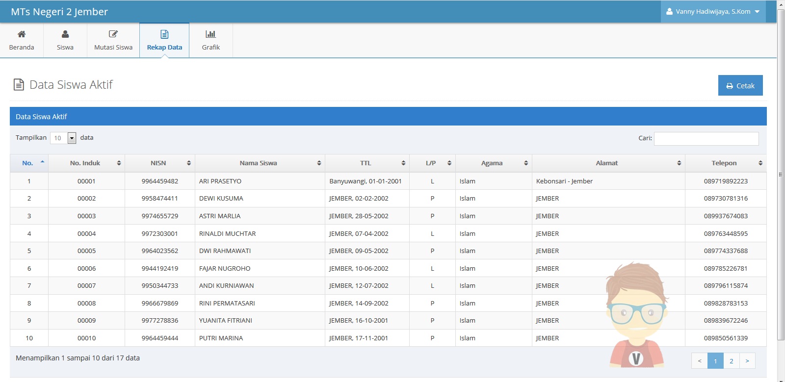 Halaman untuk merekap data siswa yang masih aktif. Pada halaman ini admin dapat mencetak data siswa aktif dalam format PDF.