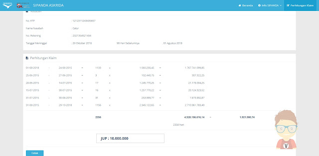 User / yang bersangkutan bisa melihat perhitungan klaim asuransi dengan hanya memasukkan No. KTP yang sudah terdaftar.