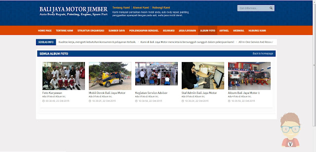 Hallo sobat.. Bagaimana kabarnya ? Pada kesempatan kali ini saya akan membahas tentang Website Company Profile, atau lebih jelasnya Website Profil Perusahaan. Dan studi kasus pembuatan website company profile ini adalah di bengkel Bali Jaya Motor Jember. Website Company Profile yang akan saya share kali ini adalah hasil modifikasi CMS Swarakalibata. Yang mana kita ketahui CMS Swarakalibata itu dibangun untuk membuat website berita. Tapi diedit dan dikembangkan sehingga jadilah website profil perusahaan yang dapat dijadikan sebagai web profil usaha. Mungkin untuk lebih jelasnya seperti apa Website Company Profile ini, bisa dilihat pada screenshoot dibawah.