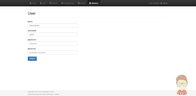 Mungkin hanya itu yang bisa saya jelaskan mengenai Sistem Informasi Penerimaan Siswa Baru Berbasis Web tersebut, jika ada yang berkenan untuk mempelajari Sistem Informasi Pusat Data Desa tersebut, atau mungkin ingin digunakan sebagai tugas kuliah, bahan skripsi atau tugas akhir. Silahkan download DISINI