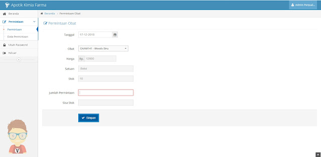 Jadi sistem persediaan obat yang saya bahas pada kesempatan ini sudah terintegrasi dengan penjelasan tentang SCM (Supply Chain Management) diatas. Dan sistem persediaan obat tersebut banyak digunakan di apotek-apotek ternama untuk mengelola data persediaan stok obat. Untuk lebih jelasnya langsung saja lihat screenshoot aplikasi nya dibawah.