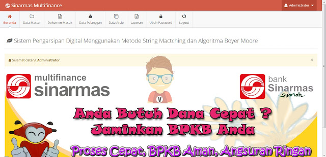 Assalamualaikum Wr. Wb.. Di kesempatan kali ini saya akan membahas tentang sebuah sistem pengarsipan digital. Sistem yang saya akan bahas kali ini bukan hanya sekedar sistem pengarsipan digital seperti biasanya. Yang hanya mempunyai fitur upload dan download dokumen dan file. Tapi sistem yang saya akan bahas ini saya integrasikan dengan sebuah metode dan algoritma, yaitu Metode String Mactching dan Algoritma Boyer Moore. Metode dan algoritma tersebut sudah menjadi satu ikatan, dan banyak digunakan pada aplikasi atau sistem-sistem lain untuk pencocokan pencarian. Jadi aplikasi yang akan saya bahas kali ini adalah Sistem Pengarsipan Digital Menggunakan Metode String Mactching dan Algoritma Boyer Moore. Untuk lebih jelasnya silahkan dilihat screennshoot dibawah.