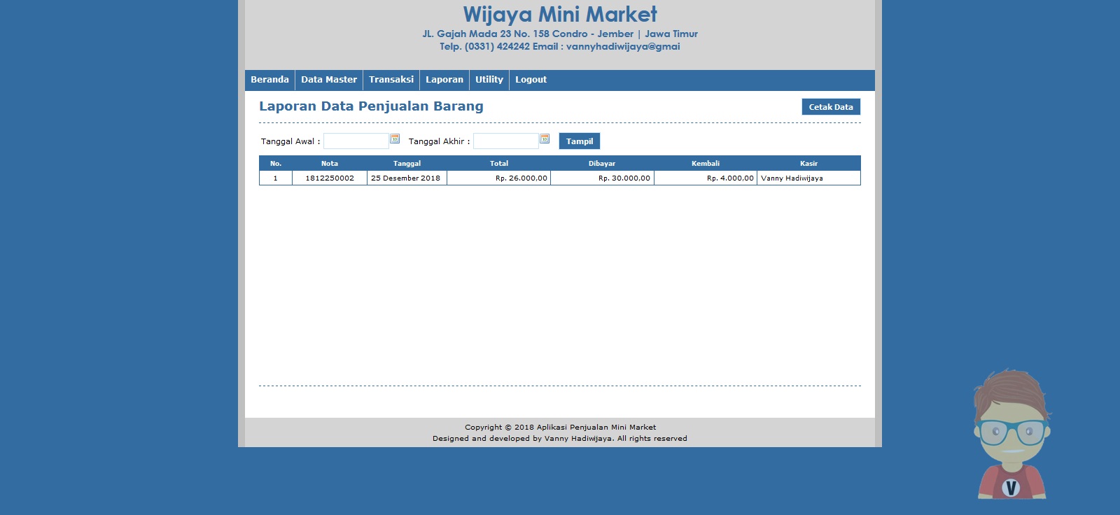 Mungkin hanya itu saja yang dapat saya bahas dan saya sampaikan melalui beberapa screenshoot diatas mengenai Sistem Informasi Penjualan Minimarket Dengan Barcode Generator. Aplikasi tersebut bisa digunakan untuk pembelajaran, pengajuan judul Tugas Akhir/Skripsi. Jika ada yang berminat mempelajari aplikasi tersebut, silahkan hubungi kontak dibawah ini.