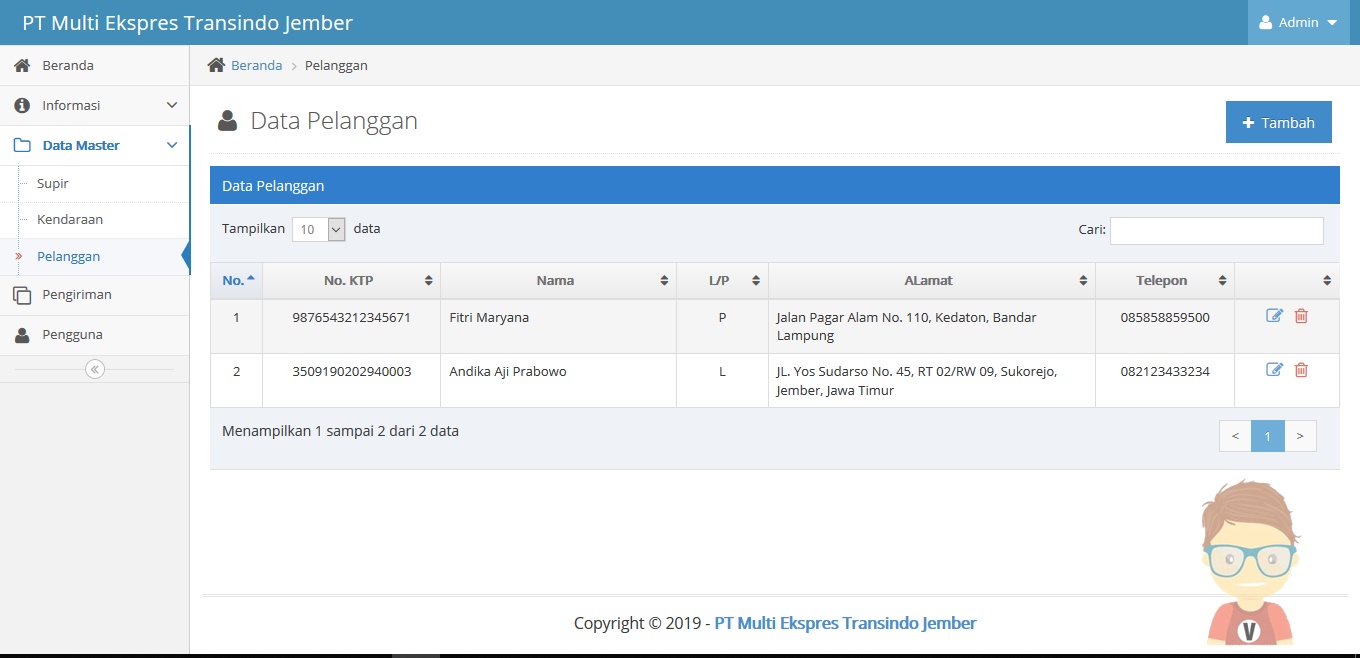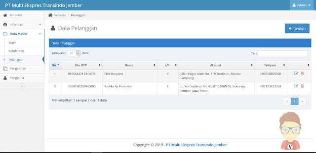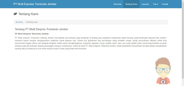Sistem informasi pengiriman barang adalah suatu aplikasi yang saat ini banyak di pakai oleh perusahaan-perusahaan ekspedisi seperti J&T, JNE, Trasn Express, dan masih banyak yang lainnya. Karena aplikasi tersebut sangat membantu dan memudahkan untuk bertransaksi, baik untuk perusahaan yang memakai, juga untuk si pengguna jasa tersebut. Yang akan saya bahas pada kesempatan kali ini adalah Sistem Informasi Pengiriman Barang di PT Multi Express Transindo Cabang Jember. Perusahaan ini sudah sangat terkenal, sudah mempunyai banyak cabang di kota-kota besar, dan baru membuka cabang baru di kota kelahiran saya. Untuk lebih jelasnya seperti apa Sistem Informasi Pengiriman Barang Berbasis Web tersebut, silahkan dilihat pada screenshoot dibawah.