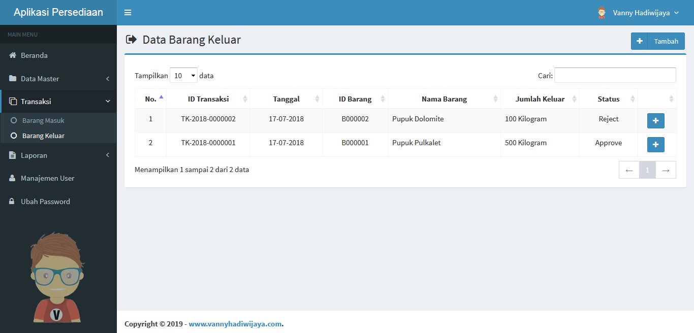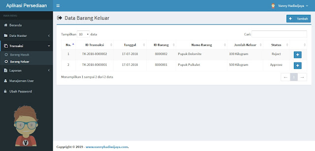 Saat ini, Admin gudang tidak perlu khawatir lagi tentang pencatatan barang, baik barang masuk, barang keluar, laporan, stok, dll karena sudah ada aplikasi yang sudah siap saji untuk membantu admin gudang melakukan pekerjaannya. Untuk lebih jelasnya seperti apa aplikasi persediaan gudang tersebut. Silahkan lihat screenshoot dibawah.