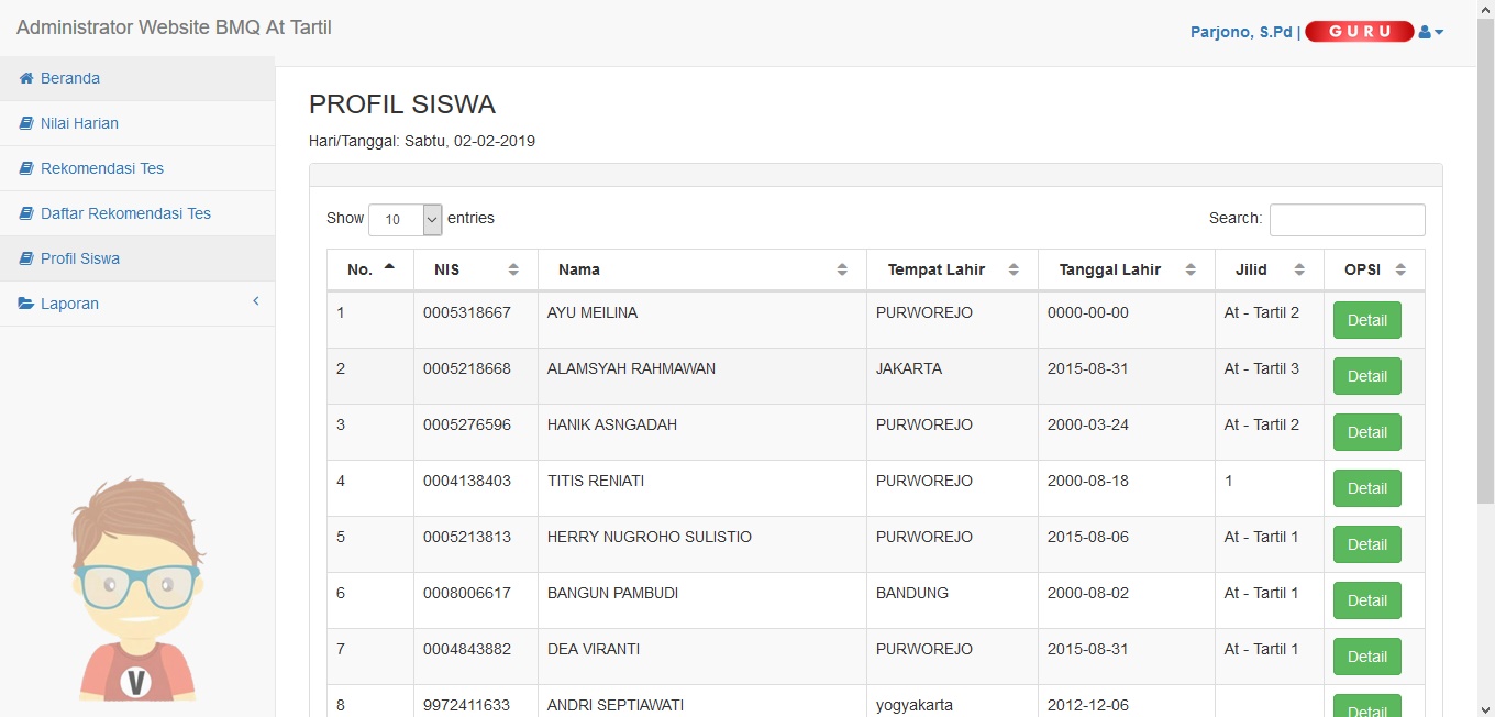 Sistem Informasi Nilai BMQ Tartil Berbasis Web