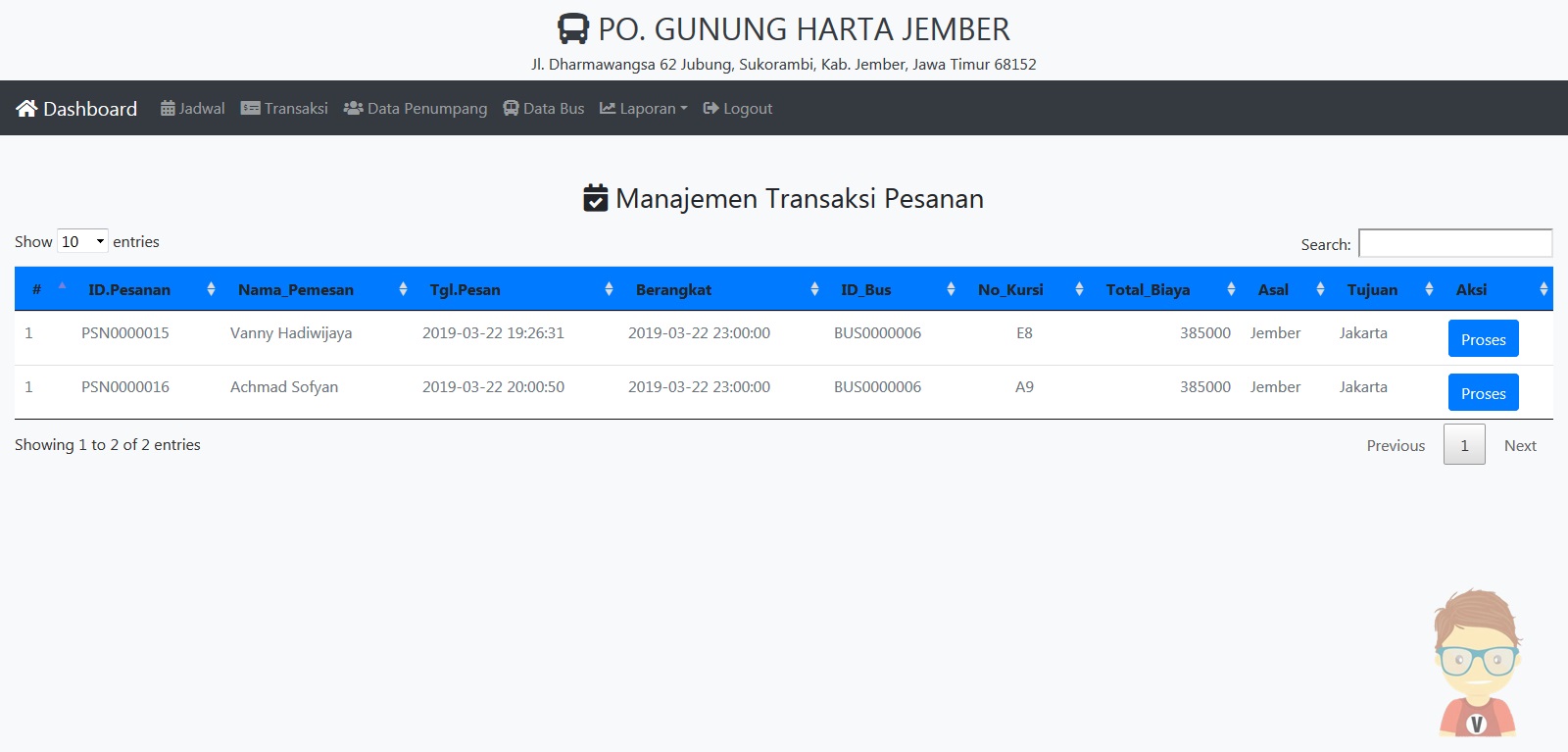 HALAMAN MANAJEMEN DATA PENUMPANG